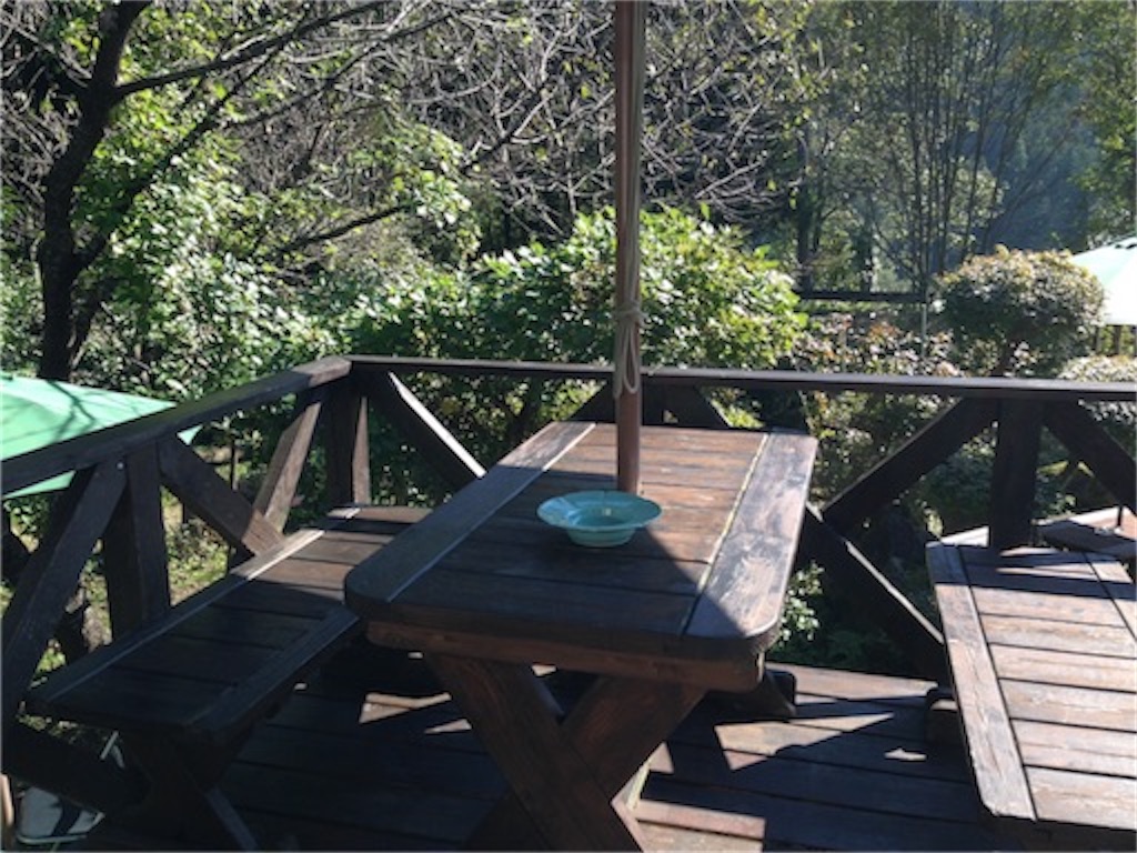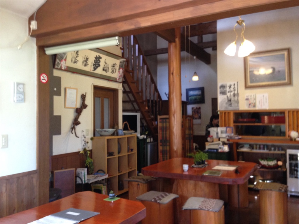大崎市古川から山形県新庄市へ抜ける羽後街道( 国道47号線)の旧道、川渡温泉街の中心にある川渡郵便局を左折して北上、くねくね曲がる急な坂道を登ると右手に同店が現れる。別荘として建てられた住居を改装した事が容易に想像出来る外観、壁面には沢山の薪が積み上げられている。8席程のテラス席を通過して玄関を入ると真正面に打ち場、左へ進むと客席、奥に厨房が。満席になれば給仕の動線が心配になるようなこじんまりした空間ではあるが、窮屈な感じは一切しなかった。