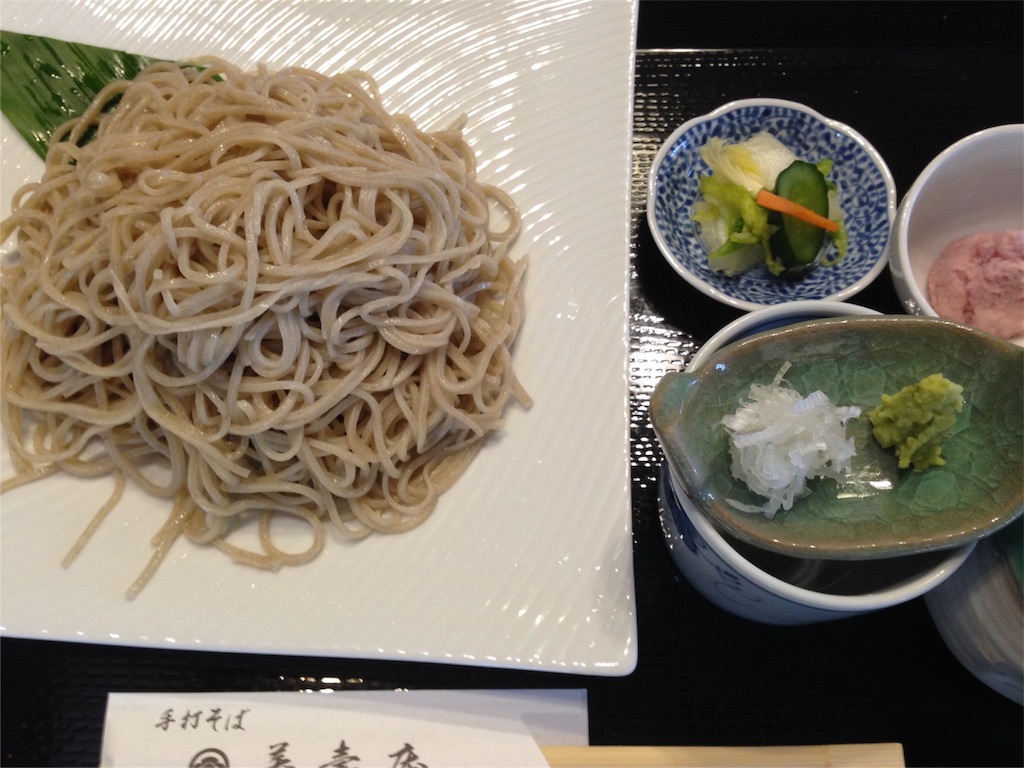 淡い紅色、綺麗に水分が絞られたピンポン球サイズで寒晒し蕎麦には必ず添えられるという辛味大根おろしは辛汁の猪口には加えずに口に含んだまま辛汁に潜らせた蕎麦を戴くというスタイルで食べた。うん、この方法なかなか良い。水蕎麦・辛汁・辛味大根おろしと様々な食べ方が出来るので、蕎麦の1/3は辛汁に浸けずに食べた気がする。もう少しあっても良いかもという遠慮がちな量の蕎麦湯のお陰もあって、辛汁の不足感による最後の儀式の不完全燃焼は避けられた。